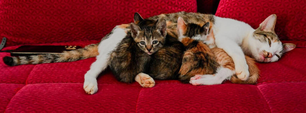 Vi har en katt som fick fyra små telningar. Gulliga, charmiga och fulla av bus. Efter cirka sju – åtta veckor kom det spontanspekulanter på kattungarna. De små liven fick ett nytt hem.